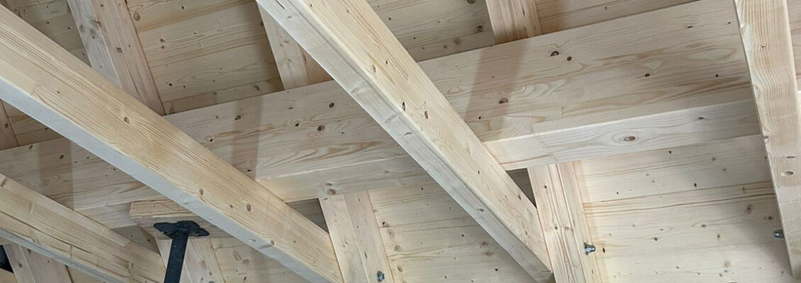 Nach der Vorbereitung der Konstruktion erfolgte die passgenaue Montage der tragenden Bauteile sowie der massiven Holzschalung. Die exakt zugeschnittenen und fachgerecht verlegten Holzplatten bilden eine robuste und langlebige Grundlage für den weiteren Dach- und Gebäudeaufbau.